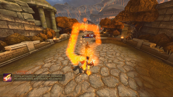 火尖枪(2技能) Flaming Spear 哪吒用战斗之魂强化自己,点燃他的长枪,暂时提升攻击速度和爆击几率。 |